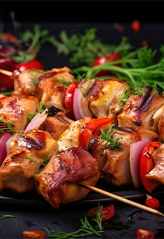 Flame-grilled Chicken Suya with seasoned Fried Rice, thick Okra Soup and crispy Fried Yam. A satisfying mix of spice and texture, freshly prepared for collection.